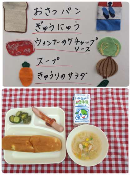 1人1本ずつの献立ですが、「ウインナーもっと欲しかったー」といわれるほど、人気の献立です。