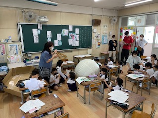 「大きなかぶ」の題材で、実際に大きなカブを引っ張って、やっと抜けた実演も子どもたちが行いました。