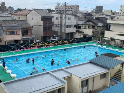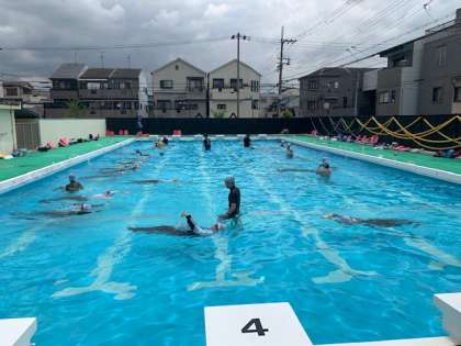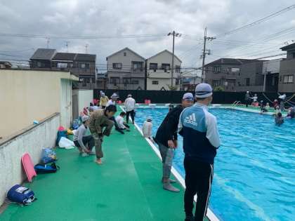 水着の時の動きと同じ動きを、着衣して比べてみました。ずいぶん重たくなったり、動きにくくなったりすると言っていました。服に空気を入れて浮いたり、ペットボトルで浮いたりしてみました。