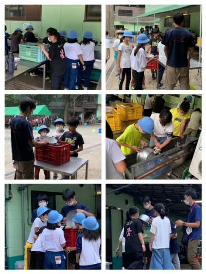 カレーライスを食べた後は、班で協力して後片付けです。元通りきれいになったかどうか、宿舎の方によるチェックを受けます。