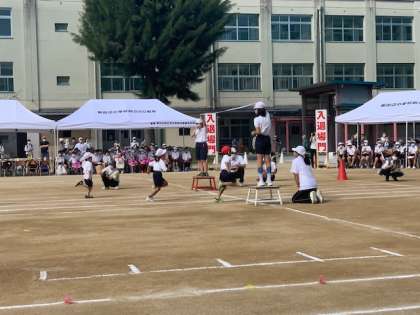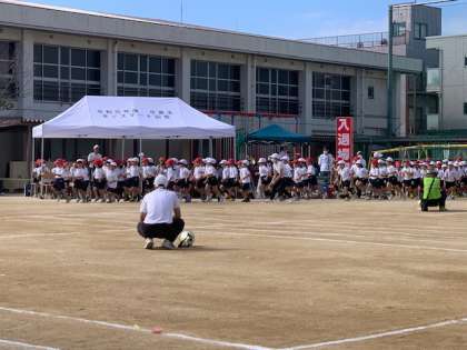 プラグラム3番、1・2年生による徒競走「1・2・3でとびだせ」です。