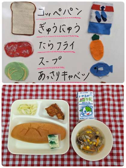 スープは、豚肉、たまねぎ、にんじん、コーン、しめじ、青みにパセリを使用しています。