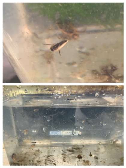 水底を網ですくって、水生昆虫を救うことにしました。