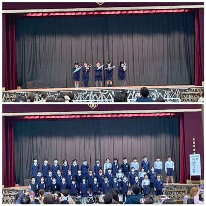 2年はグループを作り、演奏などグループごとで考えた内容で発表をしました。合唱はとても大きな声で元気いっぱいに歌うことができました。