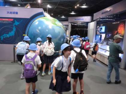 9月11日、4年生は大阪市立科学館へ社会見学にいきました。午前中は、サイエンスショーで偏光板を使って、光の勉強をしました。その後、プラネタリウムを見て、星について学習し、お弁当を食べました。午後からは、グループに分かれて、館内の展示物を見学しました。
