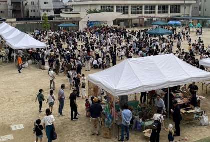 本日、午後3時から7時すぎまで「ほたるの夕べ」が行われました。ステージでは、音楽の演奏や踊りなど様々なプログラムが行われました。運動場には、食べ物やゲームのお店が並んでいます。楽しいイベントが盛りだくさんでした。