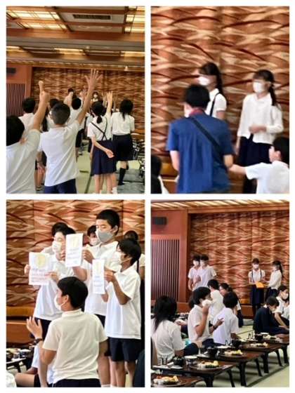 食事係の子たちが毎回楽しくなるようなことをしてくれます。今朝は、じゃんけん大会です。勝った人に賞状をわたしています。みんな楽しい気分で、いただきますができています。