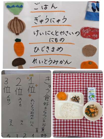 4年の教室に行くとクラスの新聞にも、夏の給食ランキング1位になっていました。