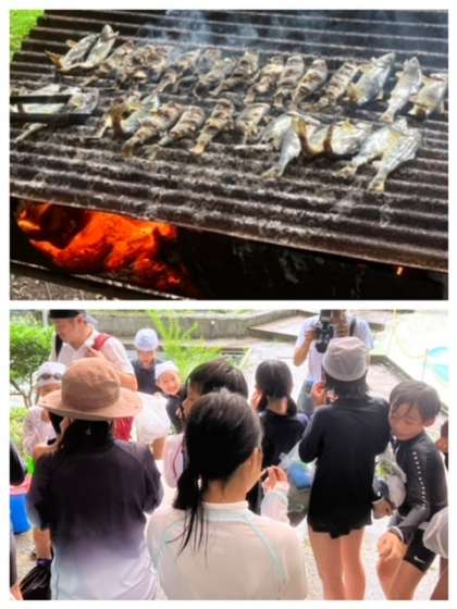 取った魚を宿舎の方に焼いていただき、みんなで食べました。