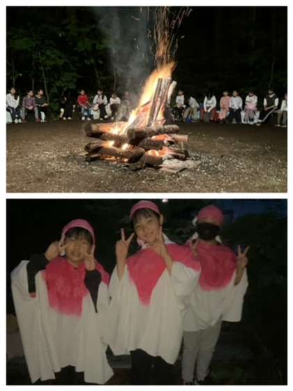 雨がやんで、キャンプファイヤをすることができました。
