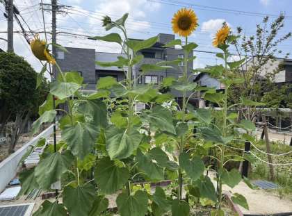 2mを超える巨大ひまわり!いきいき側の門から入るとお出迎えしてくれます。