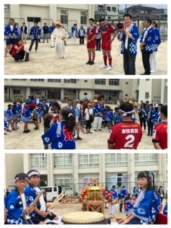 本日、こどもみこしがありました。本校の子ども達がたくさん参加しました。