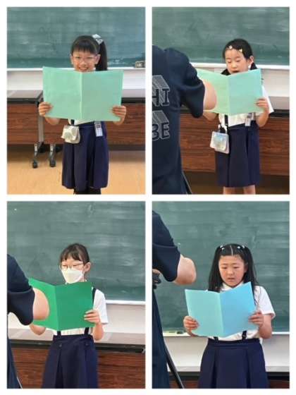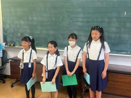 一学期の振り返りは、2年生と5年生の児童代表が行いました。はきはきと読むことができ内容とともに素晴らしかったです。
