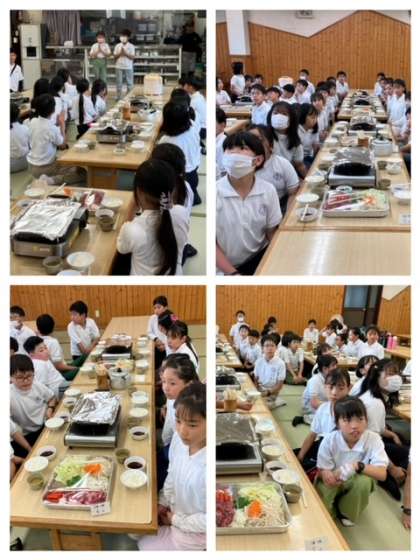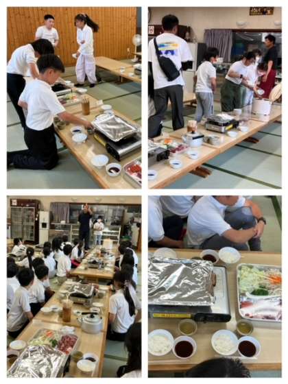 班ごとに、肉や野菜を自分達で焼いて、食べます。