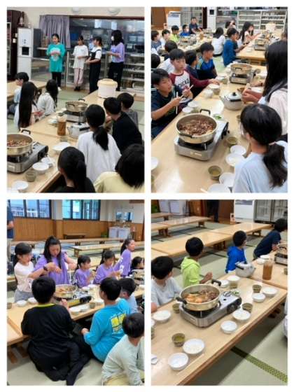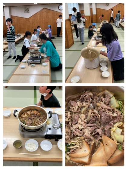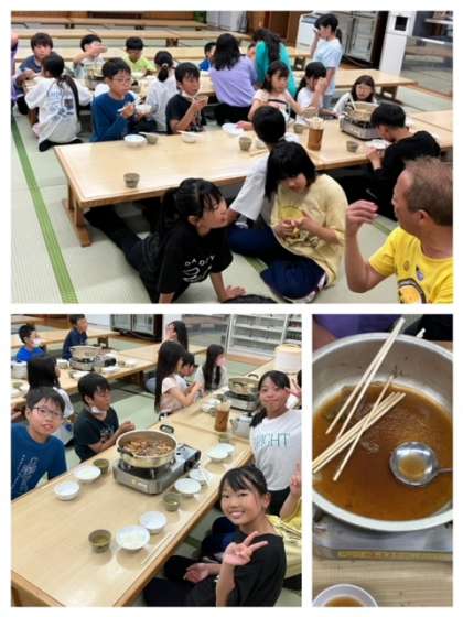 楽しみな夕食です。食事係がお世話をしてくれます。