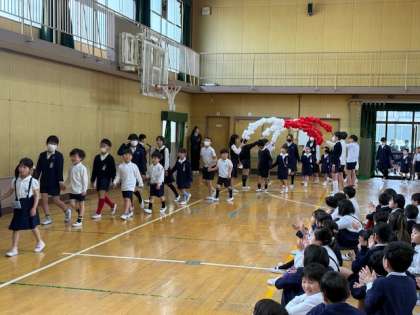 今日は2時間目に、1年生をむかえる会を児童会が開催してくれました。
