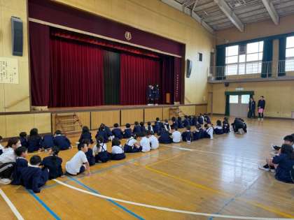 またインタビューでは、上級生と一緒に「遊びたい」、「勉強したい」、「けん玉の練習がしたい」などと答えました。