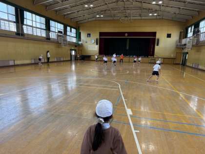 3年生は講堂で体育の学習でした。おにごっこでウォーミングアップです。赤帽子のおにが追いかけてくるぞーー逃げろーーー!