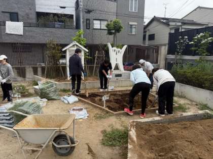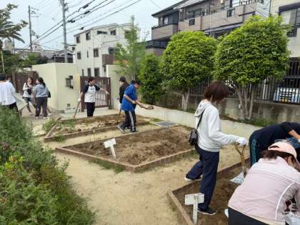 今日は子どもが帰った後、教員で学習園の土の入れ替え作業をしました。