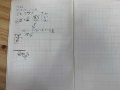 土に埋めた種がどのように大きくなり、花が咲くようになるのか、、その間を予想していました。