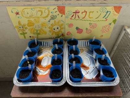 土に埋めた種が廊下にも置かれていて、