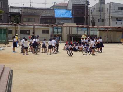 東住吉警察や区役所の方にきていただき、自転車の正しい乗り方や安全な歩き方について、いろいろ教えてもらいました。最近は子どもの自転車や交通事故が増えているそうです。安全には十分注意してほしいものです。