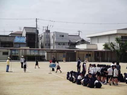 今日は、東住吉警察の方と区役所のラビット隊の方たちに来ていただいて交通安全集会が行われました。