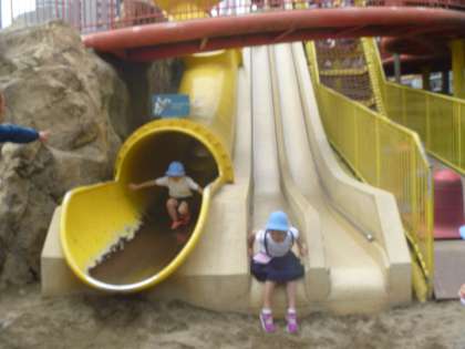 今日は、1,2年生の遠足がありました。午前中はキッズプラザの中で、キッズマートでお買い物をしたり、子どもの町の遊具で遊んだり、シャボン玉の中に入ったりして楽しく過ごしました。午後からは、お弁当を食べた後、扇町公園でおにごっこをして走り回ったり、大きなすべり台で元気に遊びました。帰りは、みんな遊び疲れたようでぐったり。すごく楽しい遠足でした。
