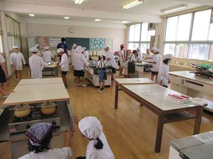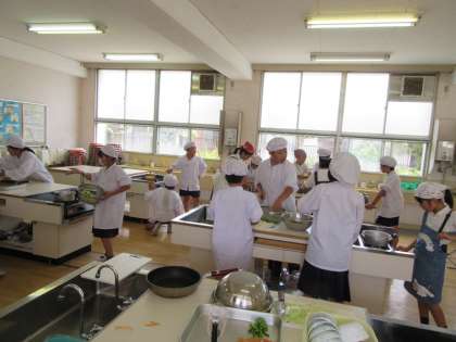 今日は5年生の調理実習がありました。メニューは、ご飯とツナ野菜いためです。ガス火でご飯を炊くところを初めて見る子も多く、米が鍋の中で踊っている様子に興味津々でした。野菜は半月切り、輪切り、短冊切りで切りました。野菜をしっかりと茹でて、フライパンでツナと和えるように炒めました。班のみんなと協力しながらスムーズに調理することができました。