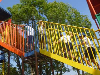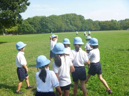 1・2年で大泉緑地に行きました。とても天気がよく、遊具でたくさん遊ぶことができました。くねくねのすべり台を何回もすべりました。お城のようなジャングルジムに登って、ぐらぐらしたつり橋をわたったときは、ちょっとどきどきしましたが、楽しかったです。林の中でくぬぎをたくさん拾いました。その後、芝生広場で食べたお弁当は、とてもおいしかったです。帰りも安全に気をつけてがんばって歩きました。