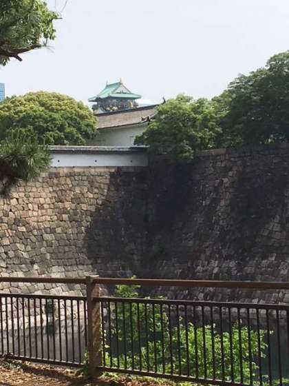 大阪城のすぐそばまで歩いて行き、大阪城を下から見上げました。
