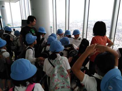 ハルカス300から見る大阪の景色は素晴らしかったです。子どもたちは東西南北にどんなものが見えるのかを確認したり、ワークシートに絵で描いたりしていました。