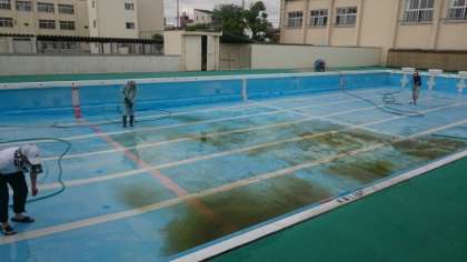 高圧洗浄でのプール清掃