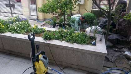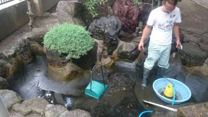 本日、管理作業員さんが、正門入ってすぐ左にある池の掃除をしてくれました。毎年6月頃に一度、水を抜いての大がかりな清掃です。