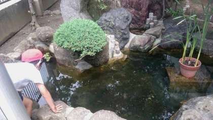 下校時など、池の中を覗いている児童の姿をよく見かけます。