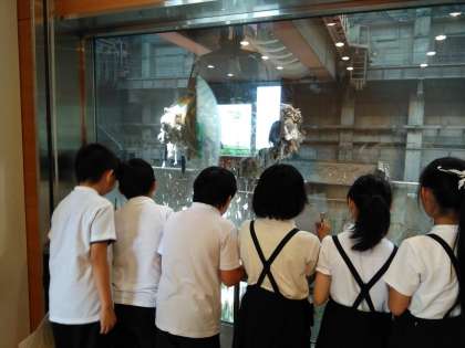 ごみがどのように焼却処分されているのかを見学しました。ごみを安全に焼却する仕組みや焼却によってできる熱エネルギーを電気に変える仕組みなどに子どもたちは興味津々でした。熱心にメモをとり、真剣に学習していました。