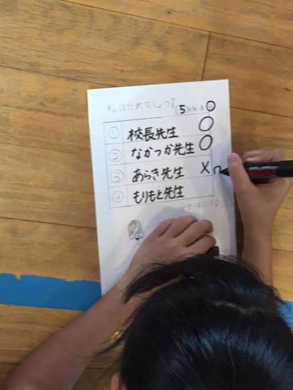 レコーダーに録音していた声を当てる問題でした。4問中、3問当てた班が2組ありました。よく分かりました。いつものように縦割りの班で仲良く活動しました。