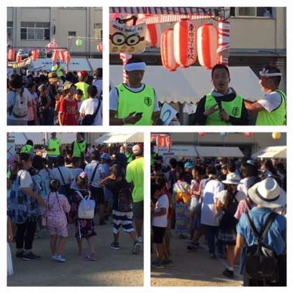 5時からは、特設の舞台で教職員による演奏や歌がありました。その後、PTA会長や役員の方々による○??クイズがありました。