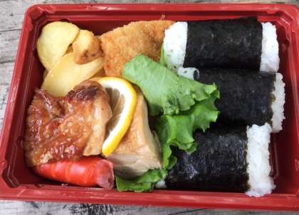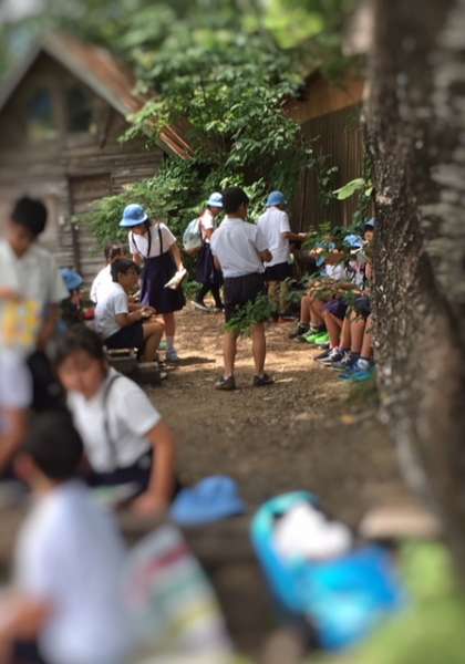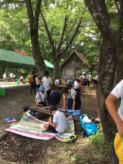 開舎式の後、宿舎の横の木陰で、お弁当をいただきました。