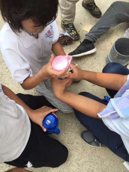 材料をアルミ缶の中に入れて混ぜ、蓋をします。