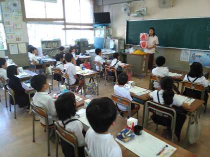 2時間目と3時間目に行いました。歯磨きをする時の大事なポイントを歯科衛生士の先生に詳しく教えていただきました。