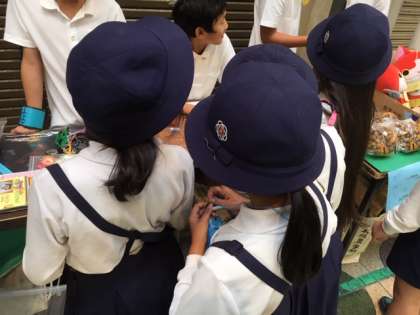 文房具を買っている子が多いようです。人形を買っている子もいました。良いものが買えるといいですね。