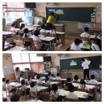 4年生は、1組が社会科、2組が理科の学習をしました。