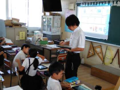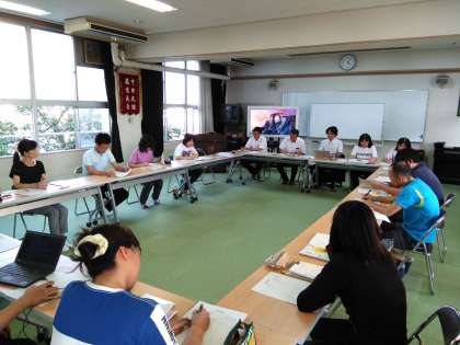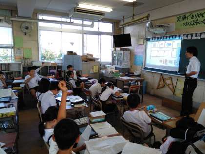 教職員の指導力の向上をめざして、校内で研究授業を実施し、そのあとで研究討議会を行っています。本校の研究テーマは『主体的に学び合い、自ら表現しようとする子どもを育てる〜ICT機器を活用した授業作り〜』で、タブレットや授業用パソコン等を活用して研究をすすめています。9日は3年2組の田村学級で国語の授業が行われました。タブレットの「発表ノート」の機能を活用し、挿絵を並び替えて物語の場面を考えるという授業内容でした。授業後に教員全員で討議会を開き、活発な議論をして研修しました。今後も研修を継続し、さらに研究活動を充実させていこうと考えています。
