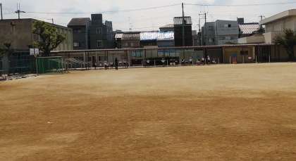 あまりも一生懸命なかけ声が気になり、事務室から運動場を除いてみると1年生の体育の時間。