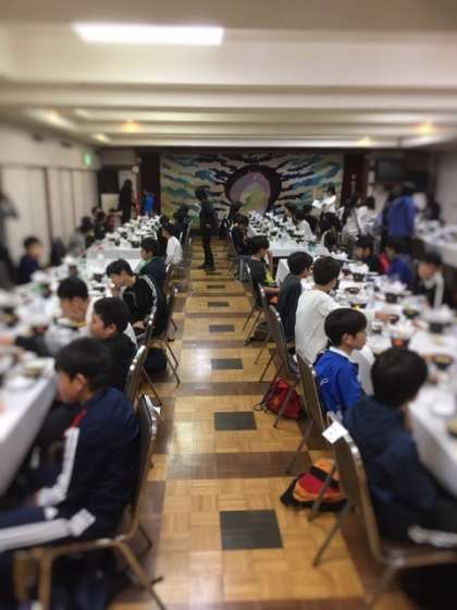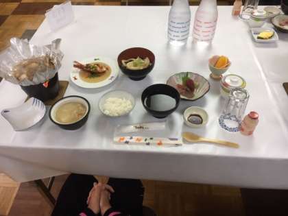 お風呂に入った後は、夕食の時間です。おなかがすいているので、ご馳走に喜んでいます。