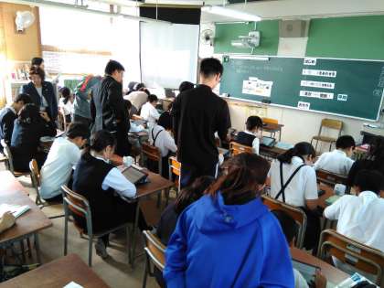5年生の算数の授業で、平均の学習をしています。その平均を求めるためにプログラミングのソフトを使って求めてみる、といった授業でした。さすがは高学年です。こうしたソフトをうまく活用して操作をしていました。授業後は大阪市教育センターから指導に来ていただいた教育指導員の先生を講師にお迎えして討議会を行いました。さらに研究活動を活発にしてICT機器をさらに活用していこうと考えています。