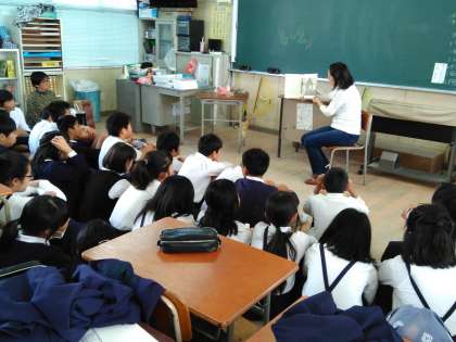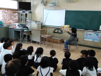 昨日に引き続き、図書ボランティアの「すみよしおはなしパレット」の皆さんに来ていただき、読み聞かせをしていただきました。ろうそくの灯がともると、本の世界へぐいぐいと引き寄せられるような感じがしてすごく雰囲気が出ます。読み聞かせもさすがに上手で、話に夢中になっていきますね。読書が今よりももっと好きになる子どもたちが多くなってほしいと願っています。