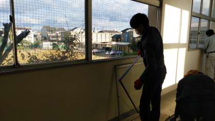 2年生と5年生の教室前が1番ひどい状態で、大人の力でもびくともしない開かずの窓もありました。