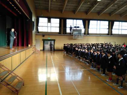 長かった2学期も無事に終わり、終業式を迎えることができました。校長先生からは、「あ・ひ・る」の力が伸びてきていることや話を聞く力が育っていること、冬休み中は学習を頑張ること、年明けは自分のめあてを持つこと、などのお話をしていただきました。生活指導の先生からは、規則正しい生活を送ること、安全に気をつけること、ルールを守り、家の手伝いも進んでするようにといったお話をしてもらいました。いい冬休みが過ごせるように祈っています。